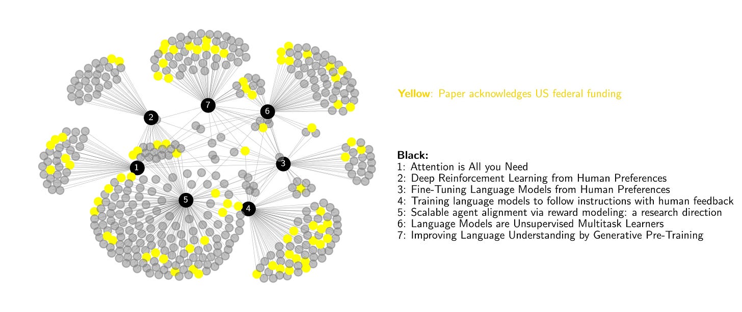 Yes, this includes AI too. A good post on this by Mark Riedl titled Visualizing the Influence of Federal Funding on the AI Boom takes seven key papers in AI, including Attention is All You Need (2017), and then traces which of their references explicitly acknowledge federal funding.